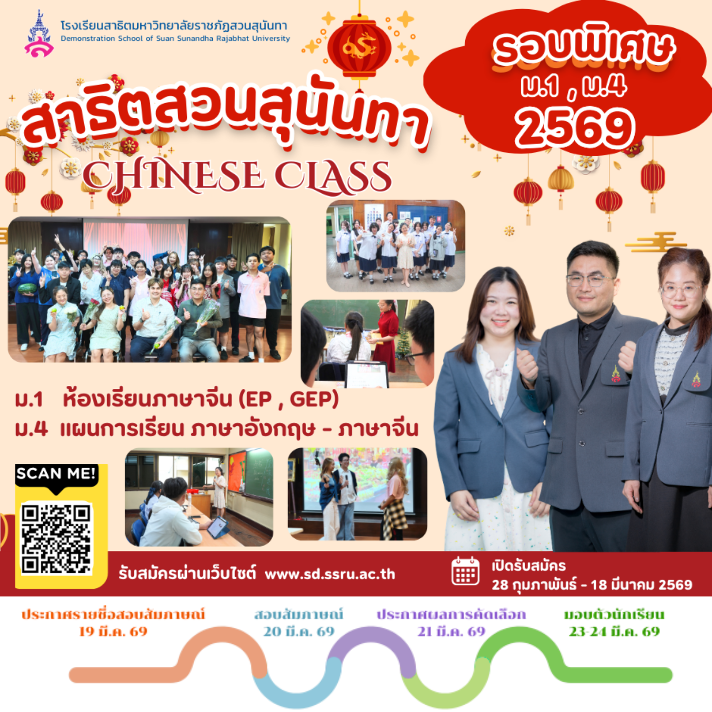 ประกาศ การรับนักเรียนเข้าศึกษา ม.1 และ ม.4 (รอบพิเศษ) ปีการศึกษา 2569